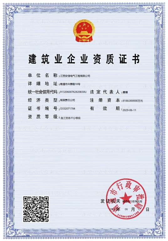 江蘇安信電氣工程有限公司,成立于2004年6月,注冊(cè)資金8188萬元,占地22000平方米,位于南通市興泰路18號(hào),東接南通站、興東機(jī)場(chǎng),西鄰南通西站、滬蘇通公鐵長(zhǎng)江大橋,交通便捷。